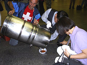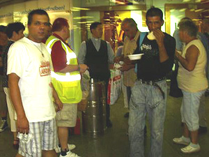Every Tuesday and Thursday, Pastor Shin from the Korean Methodist church in Budapest Hungary prays and sings and preaches at Nyugati subway station, one of the busiest places in the city, where the subway and the train station meet. Here, there are lots of homeless and poor people. At around 6.00a.m., Pastor Shin and his Korean wife have a make shift soup kitchen, where they share out a hot soup or a meal with rolls, and whatever food they have available.